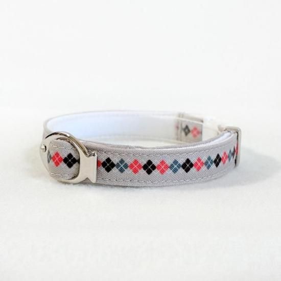 飽きのこない定番アーガイル柄はどんな子にも似合う安心デザイン。モダンで品良く、さりげないオシャレが光ります。首輪選びに迷ったらアーガイルをオススメ!